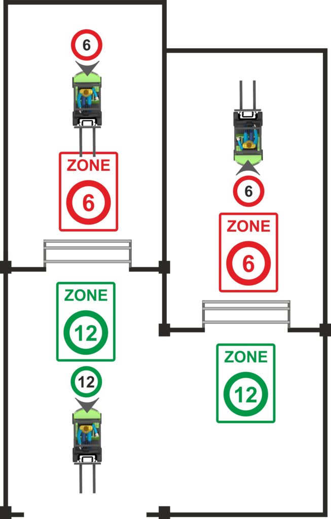 Zodra de heftruck een zone detecteert, schakelt het voertuig automatisch naar een hogere of lagere snelheid, afhankelijk van de ingestelde veiligheidszone.